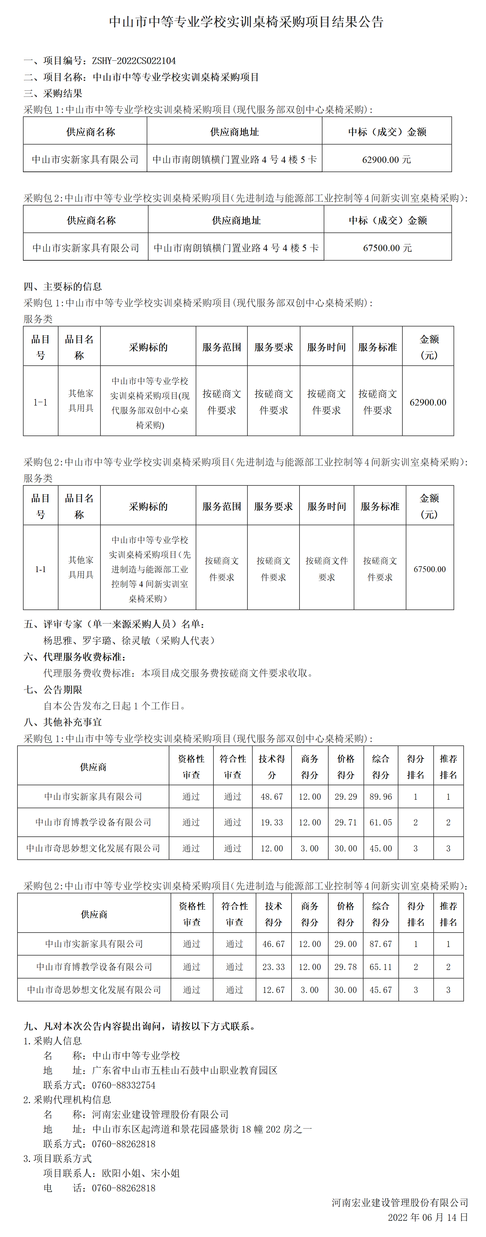 中山市中等專(zhuān)業(yè)學(xué)校實(shí)訓桌椅采購項目結果公告